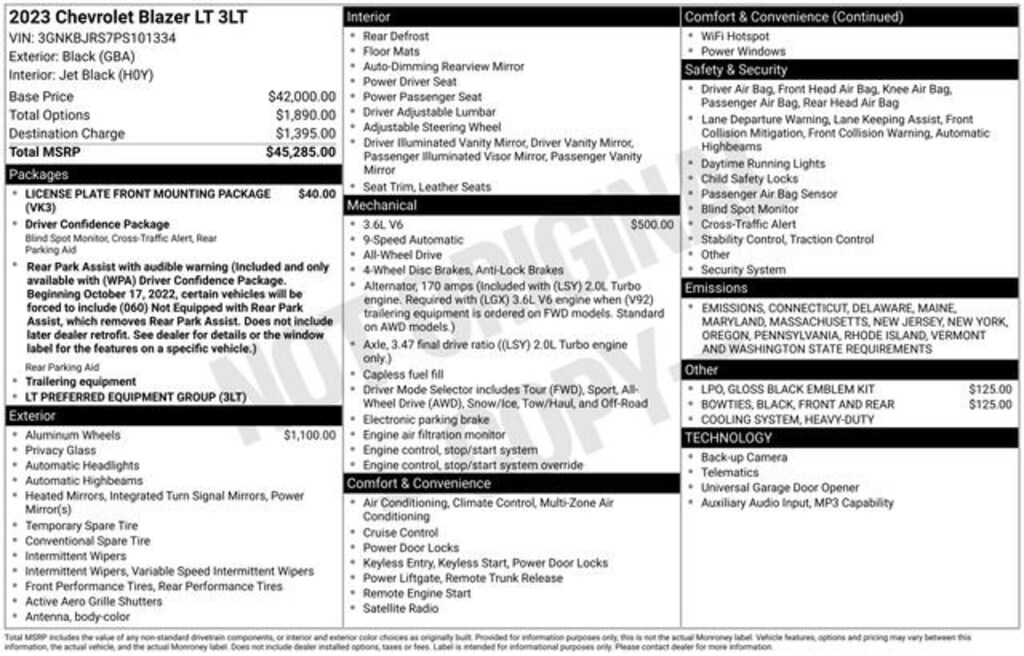 AWD.Black 2023 Chevrolet Blazer LT 4D Sport Utility AWD 9-Speed Automatic with Overdrive 3.6L V6 SIDI 19/26 City/Highway MPG