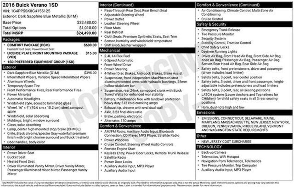 Dark Sapphire Blue Metallic 2016 Buick Verano 4D Sedan FWD 6-Speed Automatic Electronic with Overdrive ECOTEC 2.4L I4 SIDI DOHC VVT 21/32 City/Highway MPG
