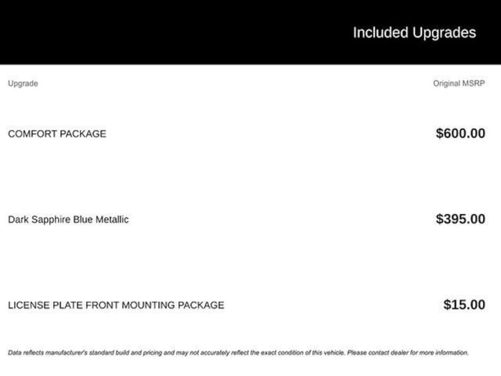 Price(s) include all costs to be paid by consumer, except for licensing costs, registration fees and taxes. Dealer is not responsible for typographical or pricing errors. Additional $389 doc fee due at time of sale. Although every reasonable effort has been made to ensure the accuracy of the information contained on this site, absolute accuracy cannot be guaranteed. This site, and all information and materials appearing on it, are presented to the user "as is" without warranty of any kind, either express or implied, including but not limited to the implied warranties of merchantability, fitness for a particular purpose, title or non-infringement. All vehicles are subject to prior sale. MPG estimates on this website are EPA estimates; your actual mileage may vary. For used vehicles, MPG estimates are EPA estimates for the vehicle when it was new. The EPA periodically modifies its MPG calculation methodology; all MPG estimates are based on the methodology in effect when the vehicles were new (please see the "Fuel Economy" portion of the EPA's website for details, including a MPG recalculation tool). Not available with special finance, lease and some other offers. Prices do not include additional fees and costs of closing, including government fees and taxes, any finance charges, any dealer documentation fees, any emissions testing fees or other fees. All prices, specifications and availability subject to change without notice.