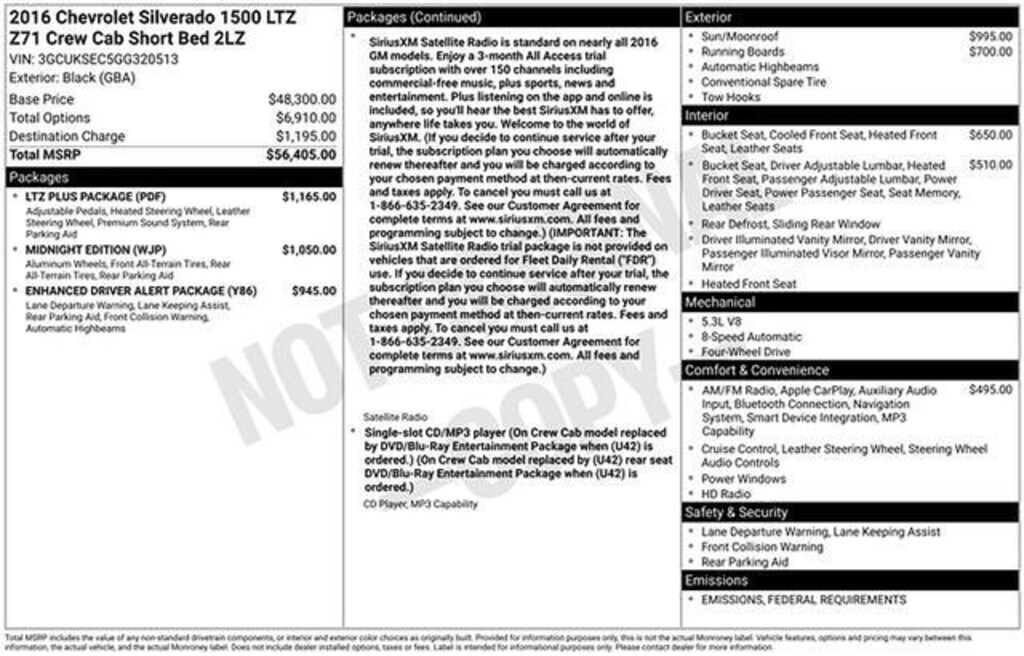 8-Speed Automatic with Overdrive, 4WD, Jet Black Leather.Black 2016 Chevrolet Silverado 1500 LTZ 2LZ 4D Crew Cab 4WD 8-Speed Automatic with Overdrive EcoTec3 5.3L V8