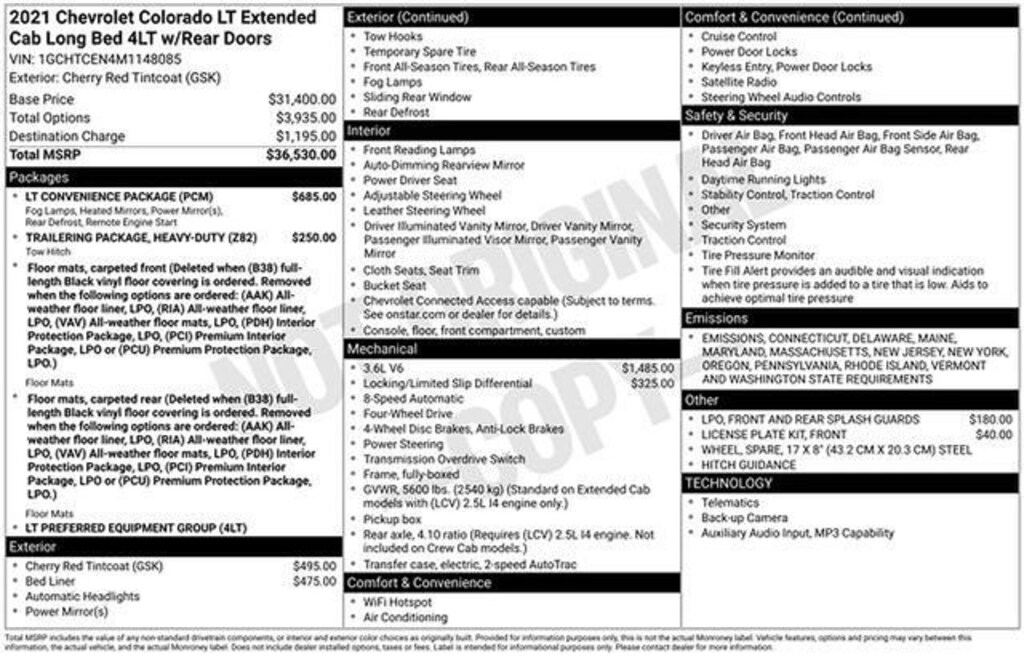 4WD.Cherry Red Tintcoat 2021 Chevrolet Colorado LT 4WD 8-Speed Automatic V6