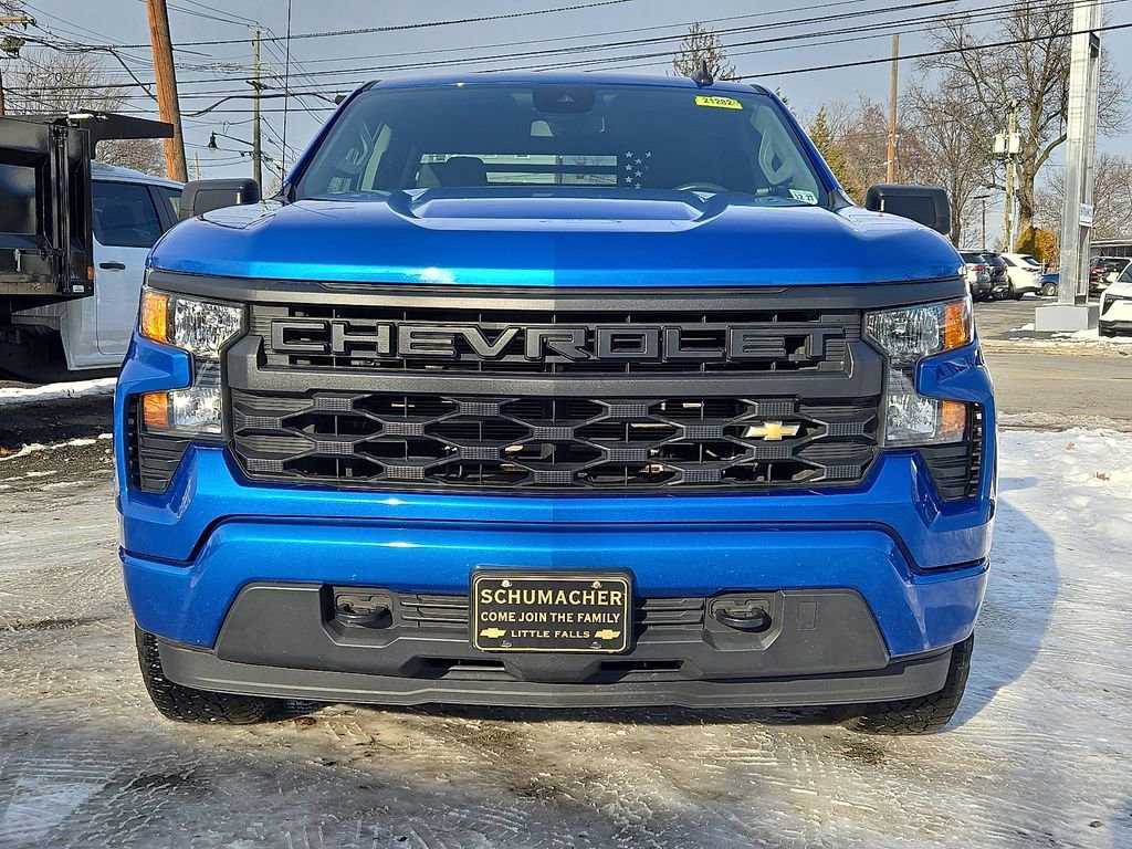 Silverado 1500 Custom, 4D Extended Cab, 2.7L Turbo, 8-Speed Automatic, 4WD, Glacier Blue Metallic, Black Cloth, 10-Way Power Driver Seat w/Lumbar, 120-Volt Instrument Panel Power Outlet, 3.5 Monochromatic Display Driver Info Center, Apple CarPlay/Android Auto, Bluetooth® For Phone, Color-Keyed Carpeting Floor Covering, Compass, Custom Convenience Package, Custom Value Package, Deep-Tinted Glass, Dual Rear USB Ports (Charge Only), Electric Rear-Window Defogger, Electrical Steering Column Lock, Electronic Cruise Control, EZ Lift Power Lock & Release Tailgate, Forward Collision Alert, Front Frame-Mounted Black Recovery Hooks, Front Pedestrian Braking, Front Rubberized Vinyl Floor Mats, Fully automatic headlights, HD Rear Vision Camera, Heated door mirrors, High Capacity Suspension Package, Hitch Guidance, IntelliBeam Automatic High Beam On/Off, LED Cargo Area Lighting, Manual Tilt Wheel Steering Column, OnStar & Chevrolet Connected Services Capable, Power Front Windows w/Driver Express Up/Down, Power Front Windows w/Passenger Express Down, Power Rear Windows w/Express Down, Preferred Equipment Group 1CX, Rear 60/40 Folding Bench Seat (Folds Up), Rear Rubberized-Vinyl Floor Mats, Remote Keyless Entry, Remote Vehicle Starter System, SiriusXM Radio, Standard Tailgate, Theft Deterrent System (Unauthorized Entry), Trailering Package, Wireless Phone Projection.