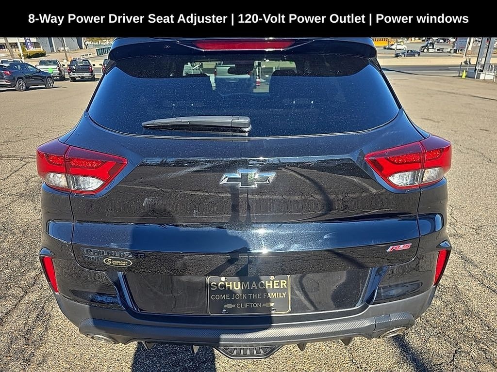 Schumacher Chevrolet of Clifton is pumped up to offer this good-looking 2023 Chevrolet TrailBlazer RS in Mosaic Black Metallic Beautifully equipped with Confidence II Package (Rear Park Assist), Convenience Package (1 Type-A & 1 Type-C USB Charging-Only Ports, 120-Volt Power Outlet, 8" Diagonal Color Touchscreen Display, Driver & Front Passenger Illuminated Vanity Mirrors, Inside Rear-View Auto-Dimming Mirror, Single-Zone Auto Climate Control Air Conditioning, and Cabin Humidity Sensor), Preferred Equipment Group 1RS (Heated Steering Wheel), 4-Way Manual Front Passenger Seat Adjuster, 6 Speakers, 6-Speaker Audio System Feature w/Amplifier, 7" Diagonal Color Touchscreen, 8-Way Power Driver Seat Adjuster, Air Conditioning, Heated Driver & Front Passenger Seats, Power door mirrors, Power driver seat, Power windows, Radio: Chevrolet Infotainment 3 System, Remote keyless entry, Ride & Handling Suspension, Security system, SiriusXM Radio, Speed control, Steering wheel mounted audio controls, Telescoping steering wheel, Tilt steering wheel, Traction control, Wheels: 18" High Gloss Black Machined Aluminum, Wireless Apple CarPlay/Android Auto, 2-Way Adjustable Front Head Restraints, 2-Way Power Driver Lumbar Seat Adjuster, 3.17 Axle Ratio, 4-Wheel Disc Brakes, ABS brakes, Alloy wheels, AM/FM radio: SiriusXM, Auto High-beam Headlights, Brake assist, Bumpers: body-color, Cloth w/Leatherette Seat Trim, Compass, Delay-off headlights, Driver door bin, Driver vanity mirror, Dual front impact airbags, Dual front side impact airbags, Electronic Stability Control, Emergency communication system: OnStar and Chevrolet connected services capable, Exterior Parking Camera Rear, Flat-Folding Front Passenger Seatback, Front anti-roll bar, Front Bucket Seats, Front Center Armrest, Front fog lights, Front License Plate Bracket, Front reading lights, Front wheel independent suspension, Fully automatic headlights, Heated door mirrors, Heated front seats, Heated steering wheel, Illuminated entry, Knee airbag, Leather Shift Knob, Leather steering wheel, Low tire pressure warning, Mosaic Black Metallic Roof, Not Equipped w/Rear Park Assist (060), Occupant sensing airbag, Overhead airbag, Overhead console, Panic alarm, Passenger door bin, Passenger vanity mirror, Power steering, Radio data system, Rear seat center armrest, Rear side impact airbag, Rear window defroster, Rear window wiper, Split folding rear seat, Spoiler, Tachometer, Trip computer, and Variably intermittent wipers!