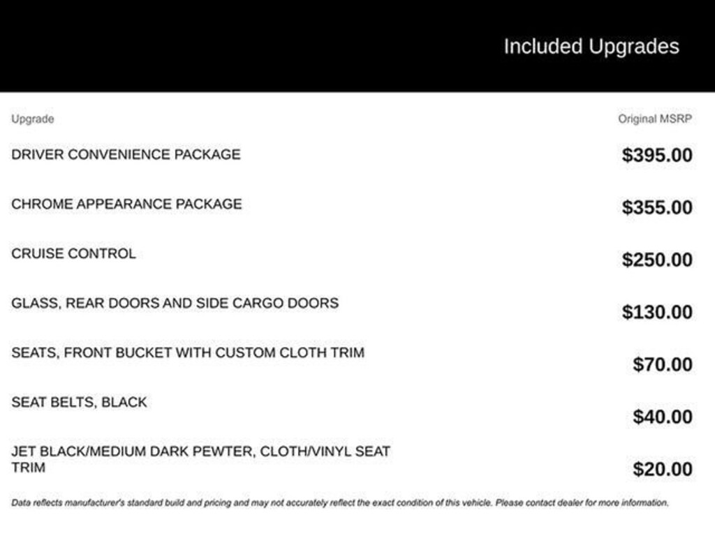 Price(s) include all costs to be paid by consumer, except for licensing costs, registration fees and taxes. Dealer is not responsible for typographical or pricing errors. Additional $399 doc fee due at time of sale. Although every reasonable effort has been made to ensure the accuracy of the information contained on this site, absolute accuracy cannot be guaranteed. This site, and all information and materials appearing on it, are presented to the user "as is" without warranty of any kind, either express or implied, including but not limited to the implied warranties of merchantability, fitness for a particular purpose, title or non-infringement. All vehicles are subject to prior sale. MPG estimates on this website are EPA estimates; your actual mileage may vary. For used vehicles, MPG estimates are EPA estimates for the vehicle when it was new. The EPA periodically modifies its MPG calculation methodology; all MPG estimates are based on the methodology in effect when the vehicles were new (please see the "Fuel Economy" portion of the EPA's website for details, including a MPG recalculation tool). Not available with special finance, lease and some other offers. Prices do not include additional fees and costs of closing, including government fees and taxes, any finance charges, any dealer documentation fees, any emissions testing fees or other fees. All prices, specifications and availability subject to change without notice.
