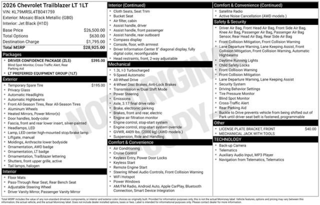 Price(s) include all costs to be paid by consumer, except for licensing costs, registration fees and taxes. Dealer is not responsible for typographical or pricing errors. Additional $399 doc fee due at time of sale. Although every reasonable effort has been made to ensure the accuracy of the information contained on this site, absolute accuracy cannot be guaranteed. This site, and all information and materials appearing on it, are presented to the user "as is" without warranty of any kind, either express or implied, including but not limited to the implied warranties of merchantability, fitness for a particular purpose, title or non-infringement. All vehicles are subject to prior sale. MPG estimates on this website are EPA estimates; your actual mileage may vary. For used vehicles, MPG estimates are EPA estimates for the vehicle when it was new. The EPA periodically modifies its MPG calculation methodology; all MPG estimates are based on the methodology in effect when the vehicles were new (please see the "Fuel Economy" portion of the EPA's website for details, including a MPG recalculation tool). Not available with special finance, lease and some other offers. Prices do not include additional fees and costs of closing, including government fees and taxes, any finance charges, any dealer documentation fees, any emissions testing fees or other fees. All prices, specifications and availability subject to change without notice.