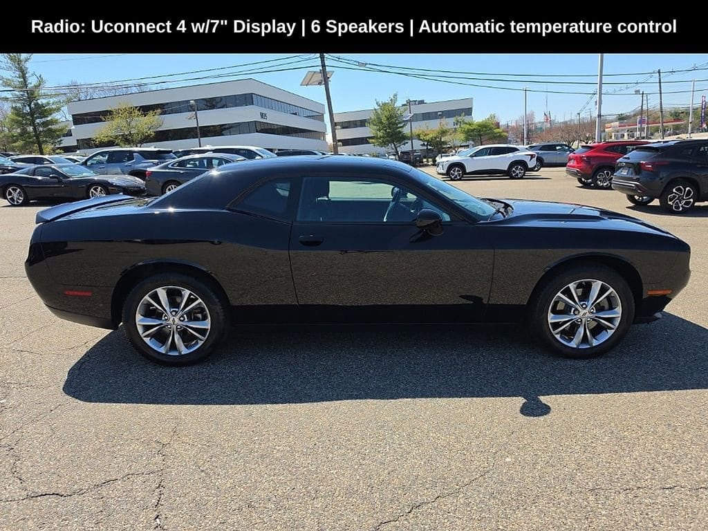 Schumacher Chevrolet of Clifton is delighted to offer this charming 2022 Dodge Challenger SXT in Pitch Black Clearcoat Beautifully equipped with Driver Convenience Group (Blind Spot & Cross Path Detection, Body Color Exterior Mirrors, Deluxe Security Alarm, Exterior Mirrors w/Heating Element, Front Fog Lamps, High-Intensity Discharge Headlamps, ParkSense Rear Park Assist System, Power Multi-Function Foldaway Mirrors, Remote Start System, and Universal Garage Door Opener), Quick Order Package 21B, 6 Speakers, Air Conditioning, Alloy wheels, Apple CarPlay/Android Auto, Automatic temperature control, Delay-off headlights, Google Android Auto, GPS Antenna Input, Heated door mirrors, Integrated Center Stack Radio, Integrated Voice Command w/Bluetooth, Power driver seat, Power windows, Radio: Uconnect 4 w/7 Display, Remote keyless entry, Speed control, Spoiler, Tilt steering wheel, Traction control, Wheels: 19 x 7.5 Satin Carbon, 4-Wheel Disc Brakes, ABS brakes, AM/FM radio, Anti-whiplash front head restraints, Apple CarPlay, Auto-dimming Rear-View mirror, Brake assist, Bumpers: body-color, Compass, Compass Gauge, Driver door bin, Driver vanity mirror, Dual front impact airbags, Dual front side impact airbags, Electronic Stability Control, Four wheel independent suspension, Front anti-roll bar, Front Bucket Seats, Front Center Armrest, Front dual zone A/C, Front reading lights, Fully automatic headlights, Houndstooth Cloth Sport Seat, Illuminated entry, Leather Shift Knob, Low tire pressure warning, Media Hub (2 USB, AUX), Outside temperature display, Overhead airbag, Overhead console, Panic alarm, ParkView Rear Back-Up Camera, Passenger door bin, Passenger vanity mirror, Power door mirrors, Power steering, Radio data system, Rear anti-roll bar, Rear reading lights, Rear seat center armrest, Rear window defroster, Security system, Speed-sensing steering, Split folding rear seat, Steering wheel mounted audio controls, Tachometer, Telescoping steering wheel, Trip computer, USB Host Flip, and Variably intermittent wipers!