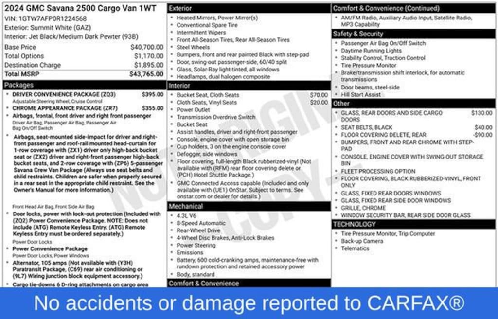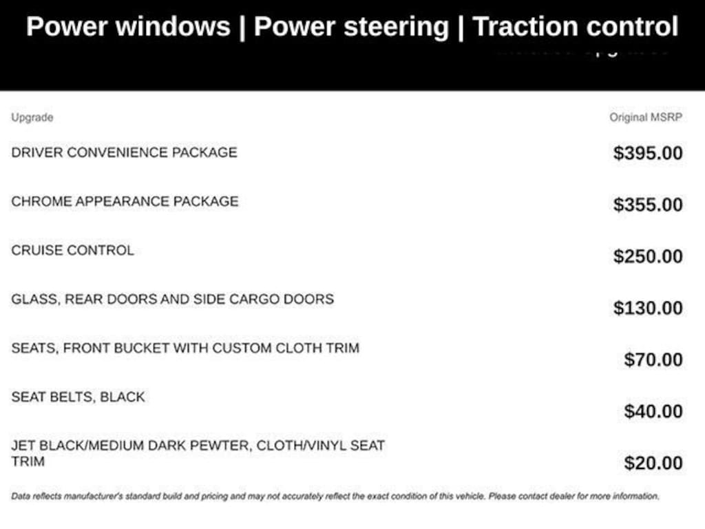 Beyond the impressive performance, this Work Van is packed with thoughtful features that make your day-to-day tasks easier. The Driver Convenience Package includes a tilt steering wheel and cruise control, while the Chrome Appearance Package adds a touch of style with chrome bumpers and grille. The cloth/vinyl seat trim provides both comfort and durability, ensuring your crew stays comfortable even during the longest workdays.