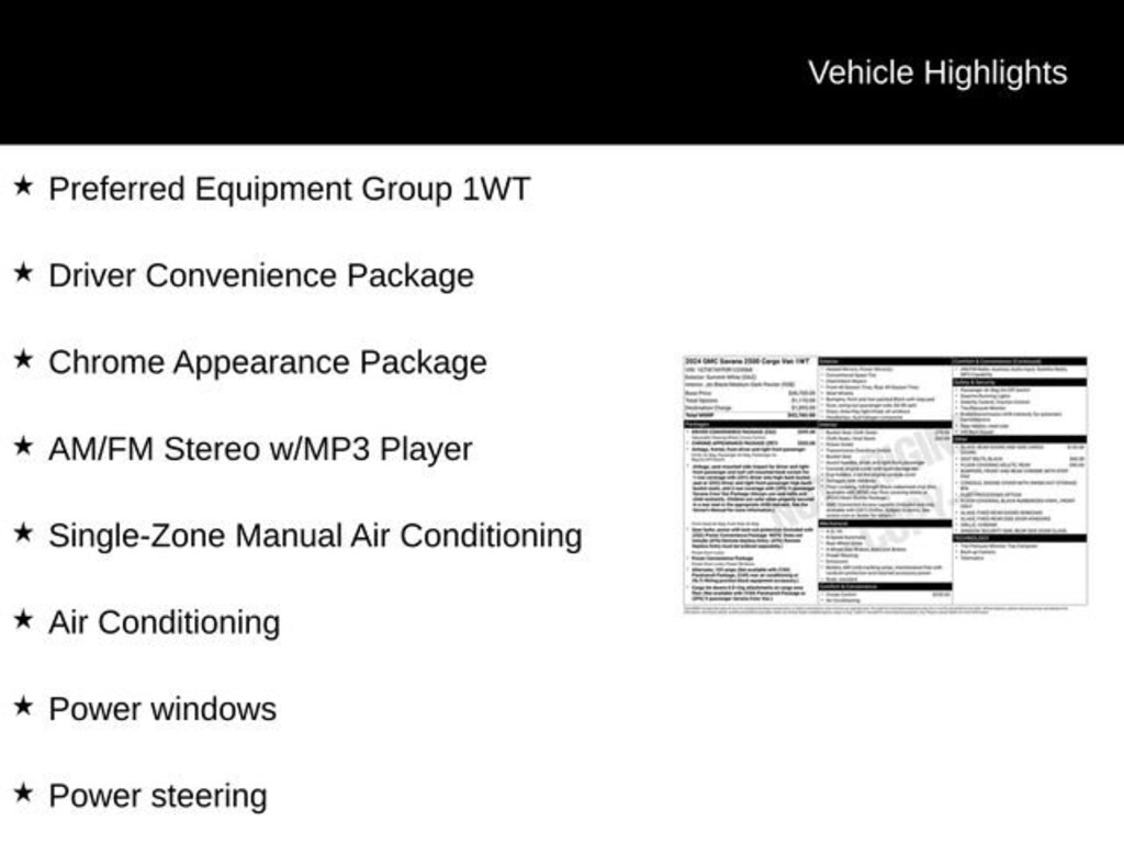 Whether you're hauling heavy equipment, transporting a crew, or tackling a variety of tasks, the 2024 GMC Savana 2500 Work Van is the perfect companion for your business. Experience the power, versatility, and thoughtful design that make this Work Van a true standout in its class. Visit our showroom today to see it for yourself and discover how it can transform your operations.